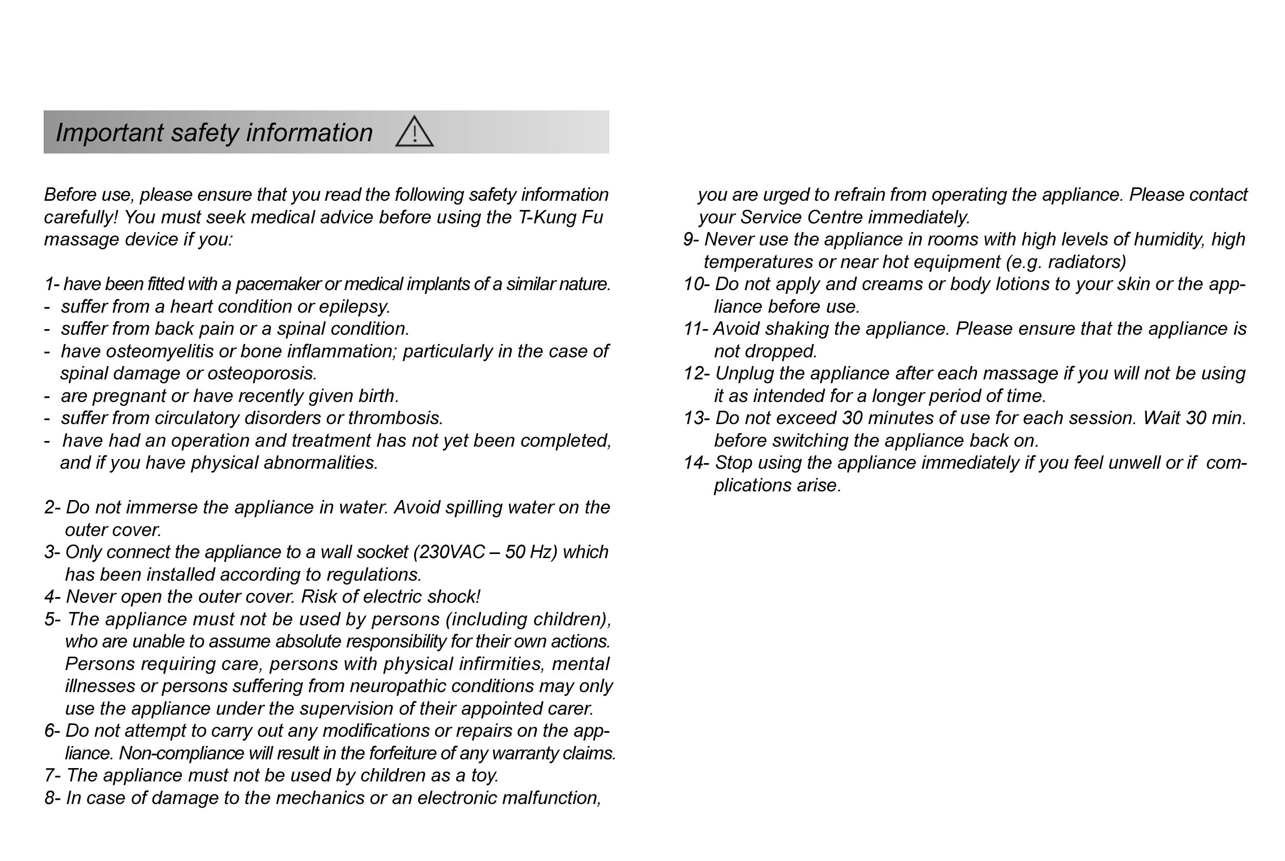 The T-Kung Fu tapping massage is suitable for: |