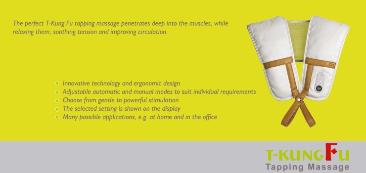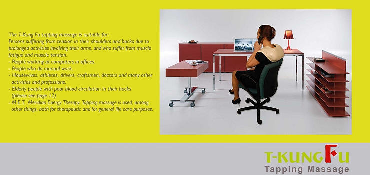 The perfect T-Kung Fu tapping massage penetrates deep into the muscles, while relaxing them, soothing tension and improving circulation.